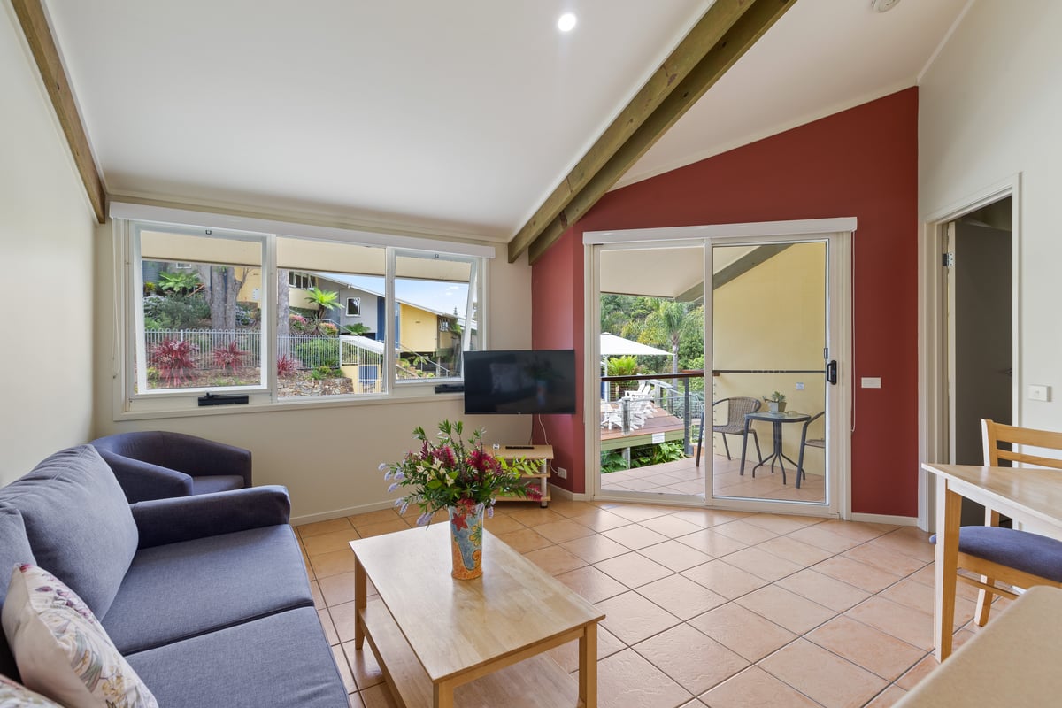 My Husband, Sister In-law & I stayed here for a wedding we attended, we booked a 2 bedroom Tree Top Apartment. The layout of the hotel has a relaxing lfill. There are 2 spa's 1 being a swim spa both of which we enjoyed using as well as having a swimming pool ( I did use the pool though the water was quite cold ) but then plunging back into the spa was great. The apartment we had a good layout, downstairs were the lounge, kitchen, dining & laundry areas, upstairs is were the two bedrooms & bathrooms were located. The view from or room overlooked the hotels grounds which was pleasant.( room number was 13 ). I have added pics of rooms. We would happily recommend the Hotel to our friends & go back again in the future. The local Bowling club is just across the road, the surf club & of course the beach are only a 2 min walk as well as the local shops. Great location. We also had a single lock up garage to park our car